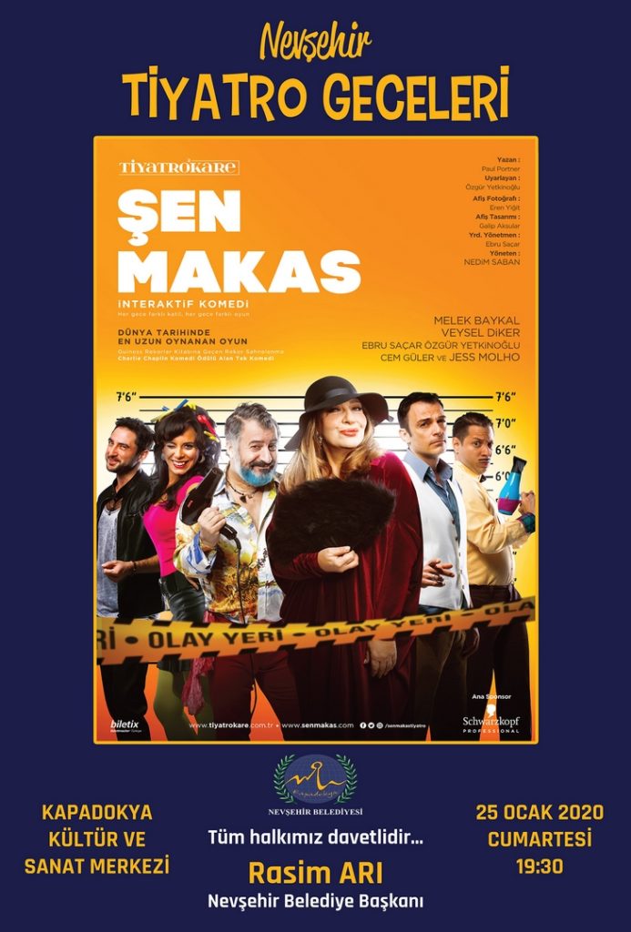 Her hafta Türkiye’nin ünlü sanatçılarını ve oyunlarını Nevşehirlilerle buluşturan ‘Tiyatro Geceleri’, 25 Ocak Cumartesi günü Melek Baykal, Veysel Diker, Ebru Saçar, Cem Güler, Özgür Yetkinoğlu, Jess Molho gibi usta oyuncuların yer aldığı Şen Makas adlı tiyatro gösterisi ile henüz eşine rastlanmayan bir interaktif komediyi sahnelemeye hazırlanıyor.