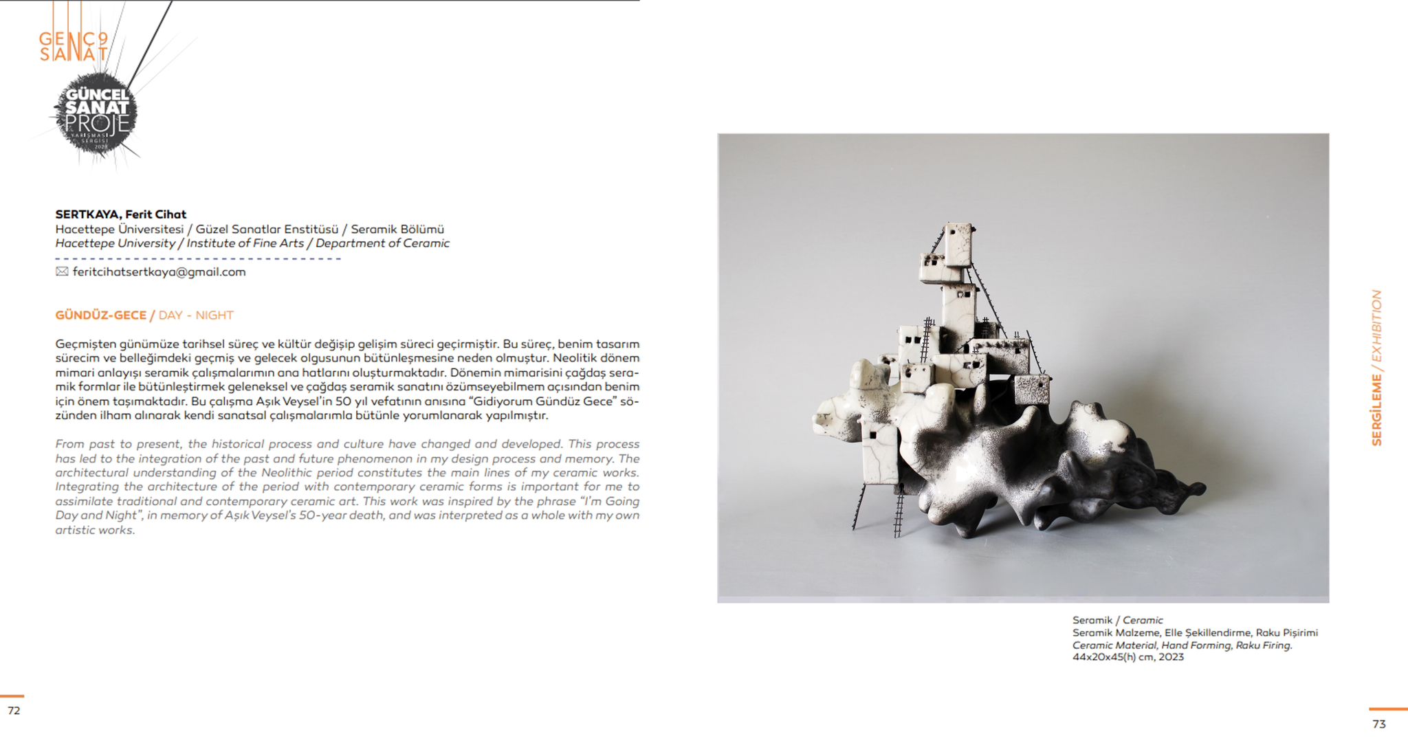 NEVÜ Güzel Sanatlar Fakültesi Seramik ve Cam Bölümü Arş. Gör. Ferit Cihat Sertkaya “Gündüz Gece” adlı eserle “Genç Sanat: Güncel Sanat Proje Yarışması”nda sergileme ödülüne layık görüldü.