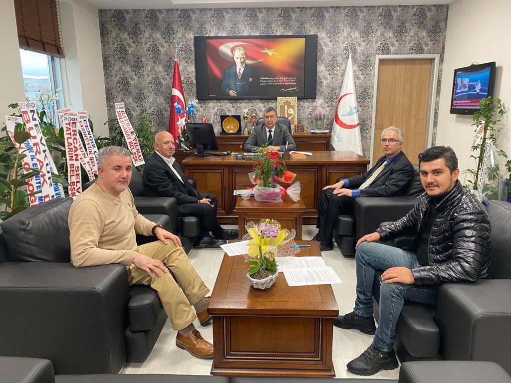 İl Sağlık Müdürlüğü tarafından kısa sürede hizmet vermesi planlanan yeni binanın son durumu hakkında görüş alış verişinde bulunmak amacı ile Sağlık Müdürlüğü makam odasında gerçekleşen ziyarete; Ahmet Avlanmaz , Seyit Avlanmaz, Sağlık Müdürü Op. Dr. Hasan Tartar, Sağlık Hizmetleri Başkanı Dr. Mehmet Kayacan ve İnşaat Proje Birim Sorumlusu Hakan Şimşek katıldı.