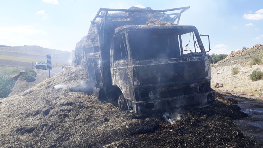 İtfaiye ekipleri tarafından yapılan çalışmaların ardından söndürülen kamyonet kullanılamaz hale geldi.