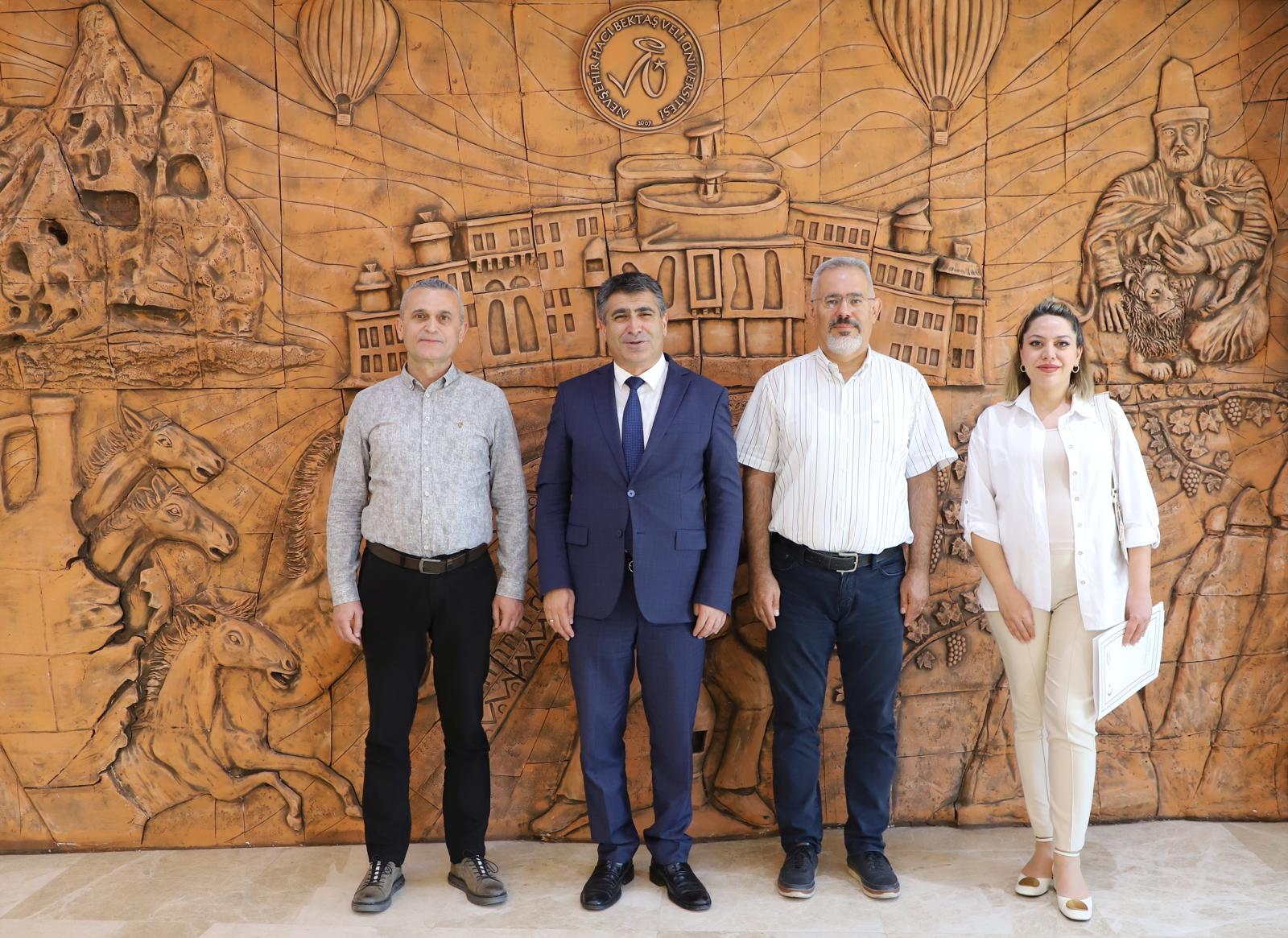 Nevşehir Sosyal Güvenlik Kurumu (SGK) İl Müdürü Mehmet Baltacı beraberinde Tescil Şefi Merve Doğan ile Nevşehir Hacı Bektaş Veli Üniversitesi (NEVÜ) Rektörü Prof. Dr. Semih Aktekin’i ziyaret etti.