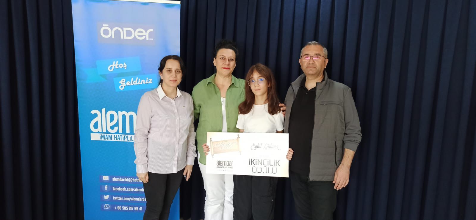 Öğrencimiz Eylül GÜLMEZ’in ikincilik ödülü 18 Mayıs 2024 Cumartesi günü Alemdar İmam Hatipliler Derneği Merkezinde yapılan ödül programında dernek başkanı Mehmet KAHRAMAN tarafından takdim edilmiştir.