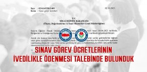 Söz konusu sınavlarda görev alan eğitim çalışanlarının mağduriyetlerinin giderilmesi elzem olup sınav görev ücretlerinin ivedilikle ödenmesi sağlanmalıdır” ifadelerinde bulunuldu.