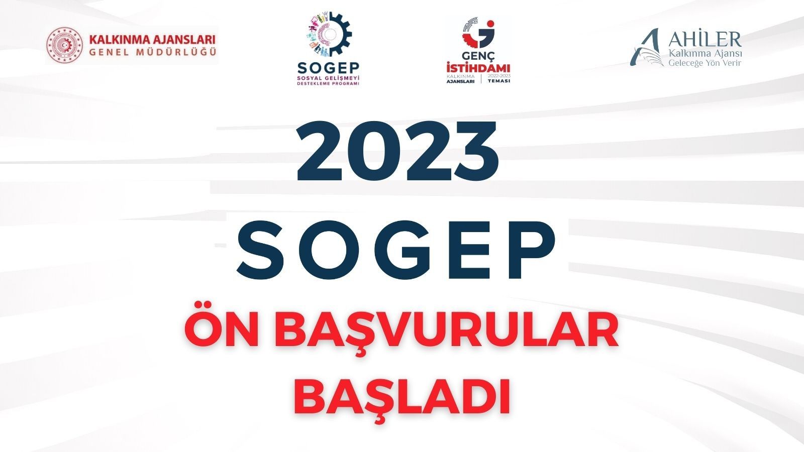 2023 Yılı Sosyal Gelişmeyi Destekleme Programı (SOGEP) ön başvuruları alınmaya başlanmıştır. Ön başvuru formunun 24.01.2023 tarihine kadar aşağıda yer alan e-posta adreslerine iletilmesi önemlidir.