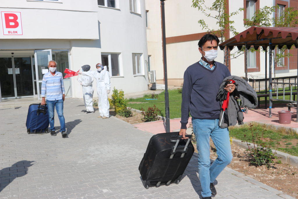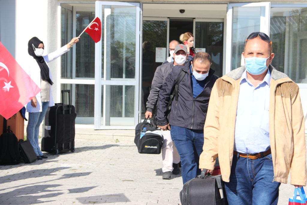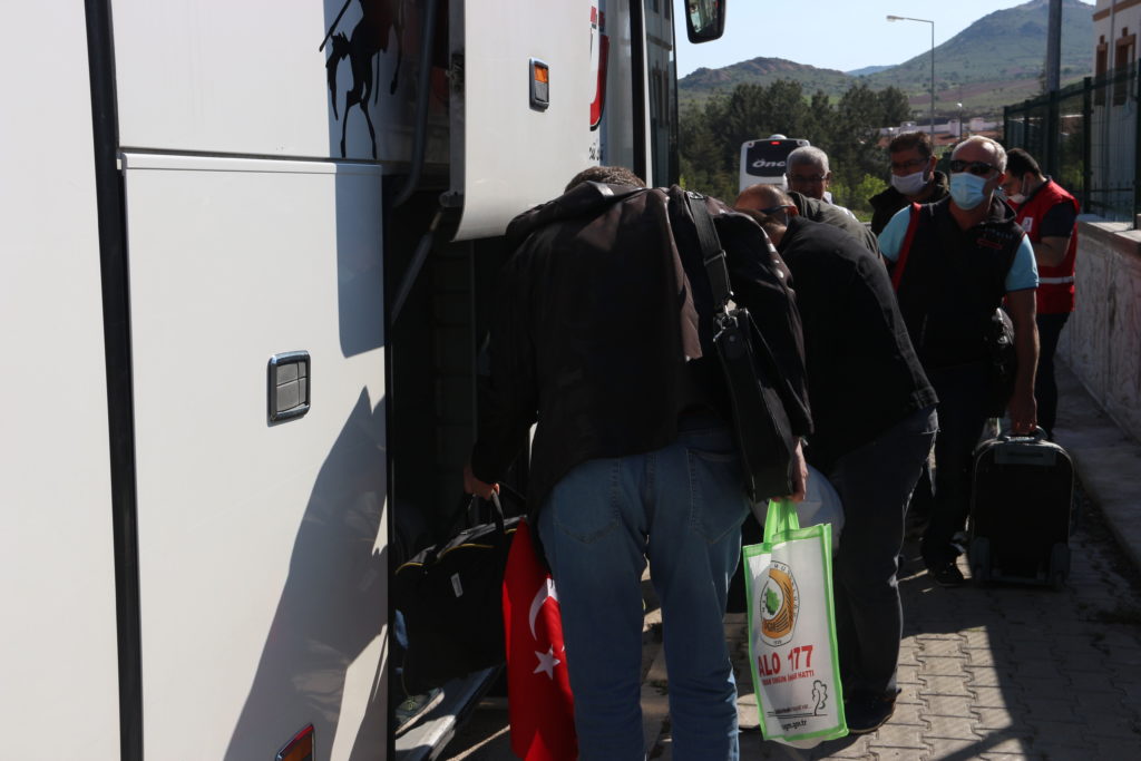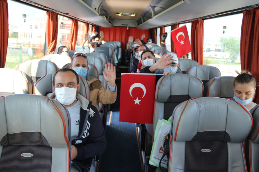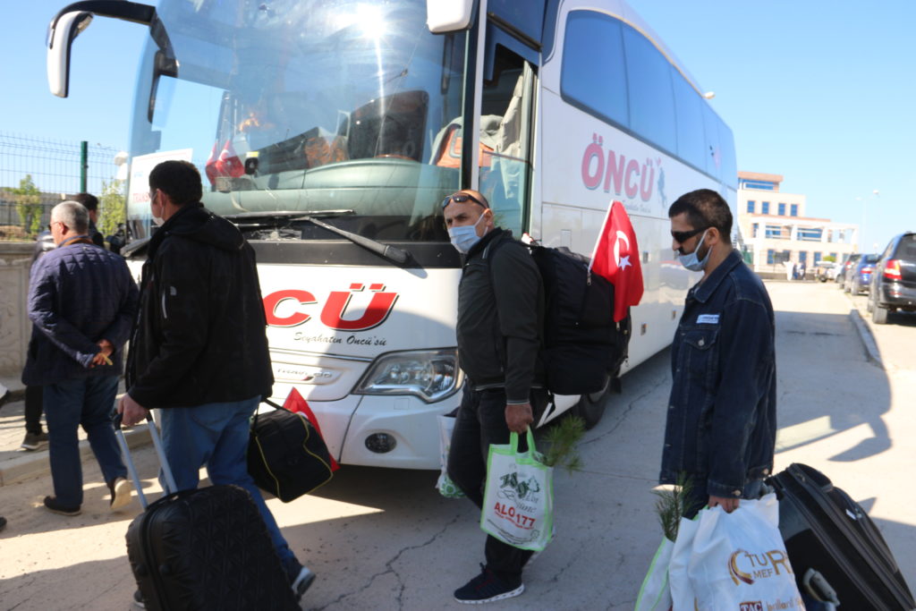 Sağlık görevlileri tarafından kontrolden geçirilen vatandaşlar, otobüslerle memleketlerine uğurlandı.