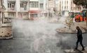 Soğukta dökülen asfalt caddeyi saunaya dönüştürdü