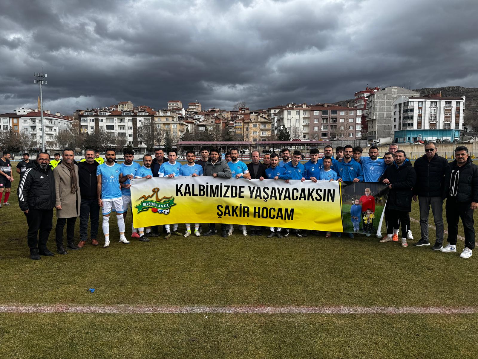 Nevşehir Amatör Spor Kulüpleri Federasyonu Başkanlığı ve TFF Nevşehir İl Temsilciliği tarafından ahde vefa örneği sergilenirken “Kalbimizde Yaşayacaksın Şakir Hocam” yazılı pankart bütün spor kamuoyunu duygulandırdı.