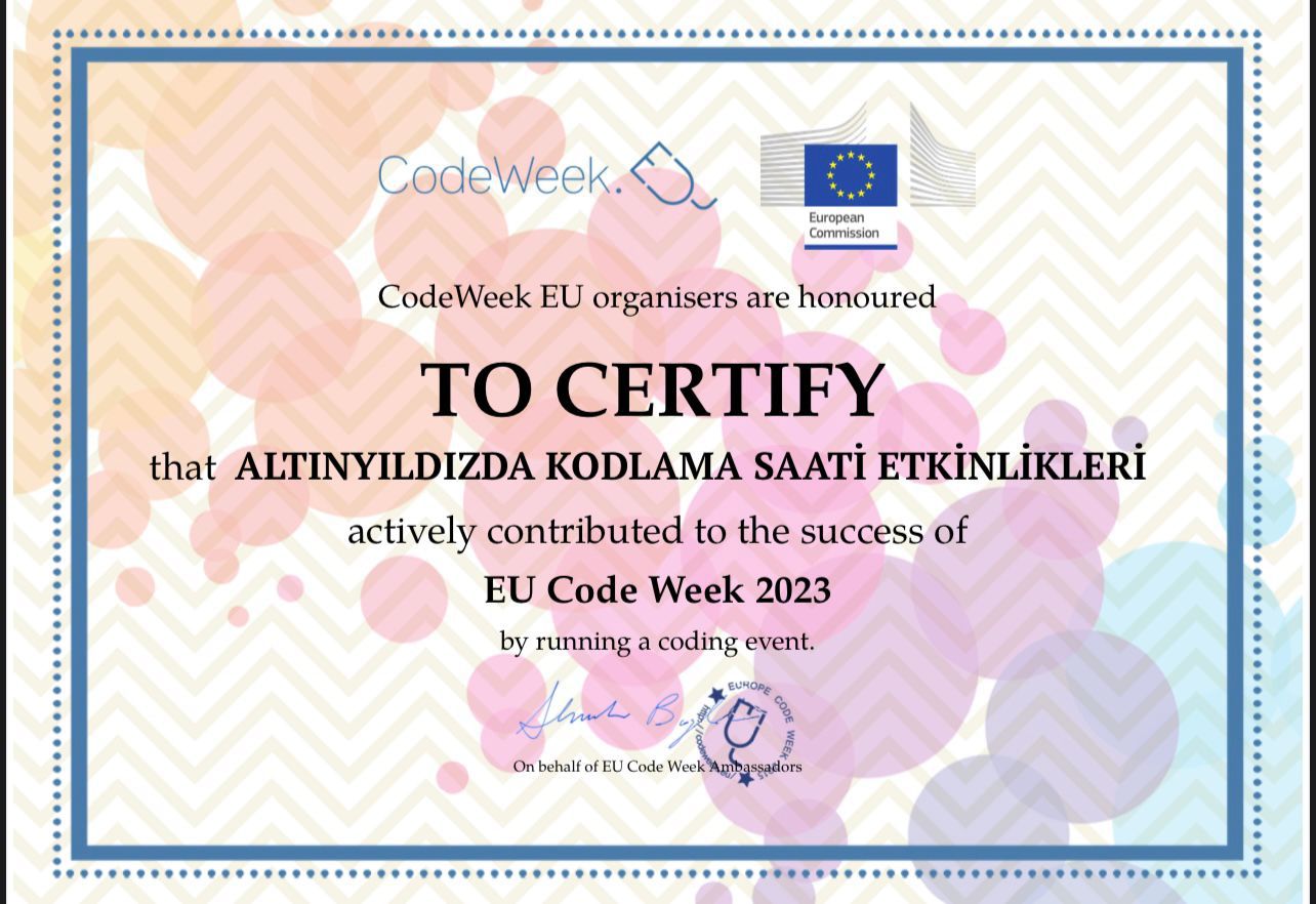 Milli Eğitim Bakanlığı’nın Yenilik ve Eğitim Teknolojileri Genel Müdürlüğünün Kodlama Saati Etkinlikleri kapsamında uluslararası ölçekte bilgisayar bilimleri eğitiminin öğrenci ve öğretmenler tarafından desteklenmesi amacıyla “Hour Of Code” “Kodlama Saati” etkinliği 186 ülkede eş zamanlı olarak yürütülmüştür. Bu kapsamda 4-10 Aralık 2023 tarihleri arasında düzenlenen etkinliğe, okulumuz yüksek bir öğrenci katılımıyla başarı göstermiştir.