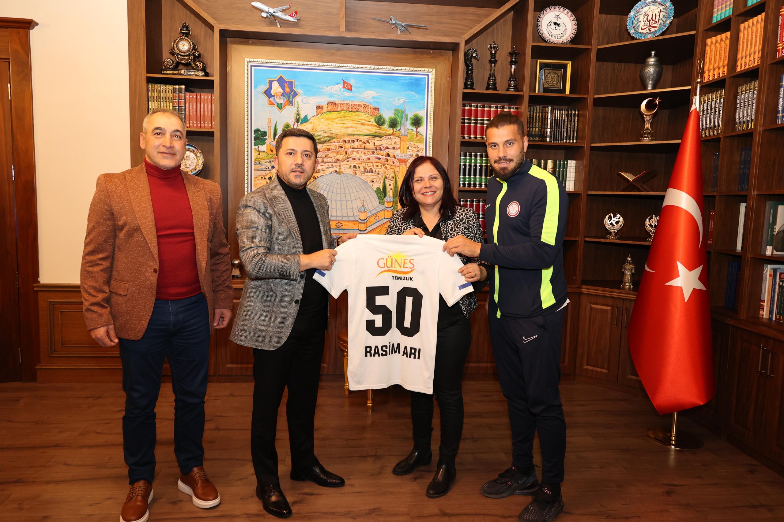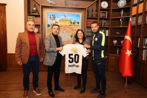Başkan Emine Türkmen Demir ve takım kaptanı Anıl Bircan, Başkan Rasim Arı’ya Suvermez Kapadokyaspor forması hediye ederken Başkan Rasim Arı’da nazik ziyaretleri için Başkan Emine Türkmen Demir ve Suvermez Kapadokyaspor Kulübü heyetine teşekkür ederek başarılar diledi.