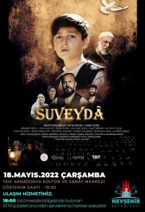 Nevşehir Belediyesi Kültür ve Sosyal İşler Müdürlüğü tarafından düzenlenen Kültür ve Sanat Günleri kapsamında bu akşam ‘Suveyda’ filmi gösterimi gerçekleştirilecek.