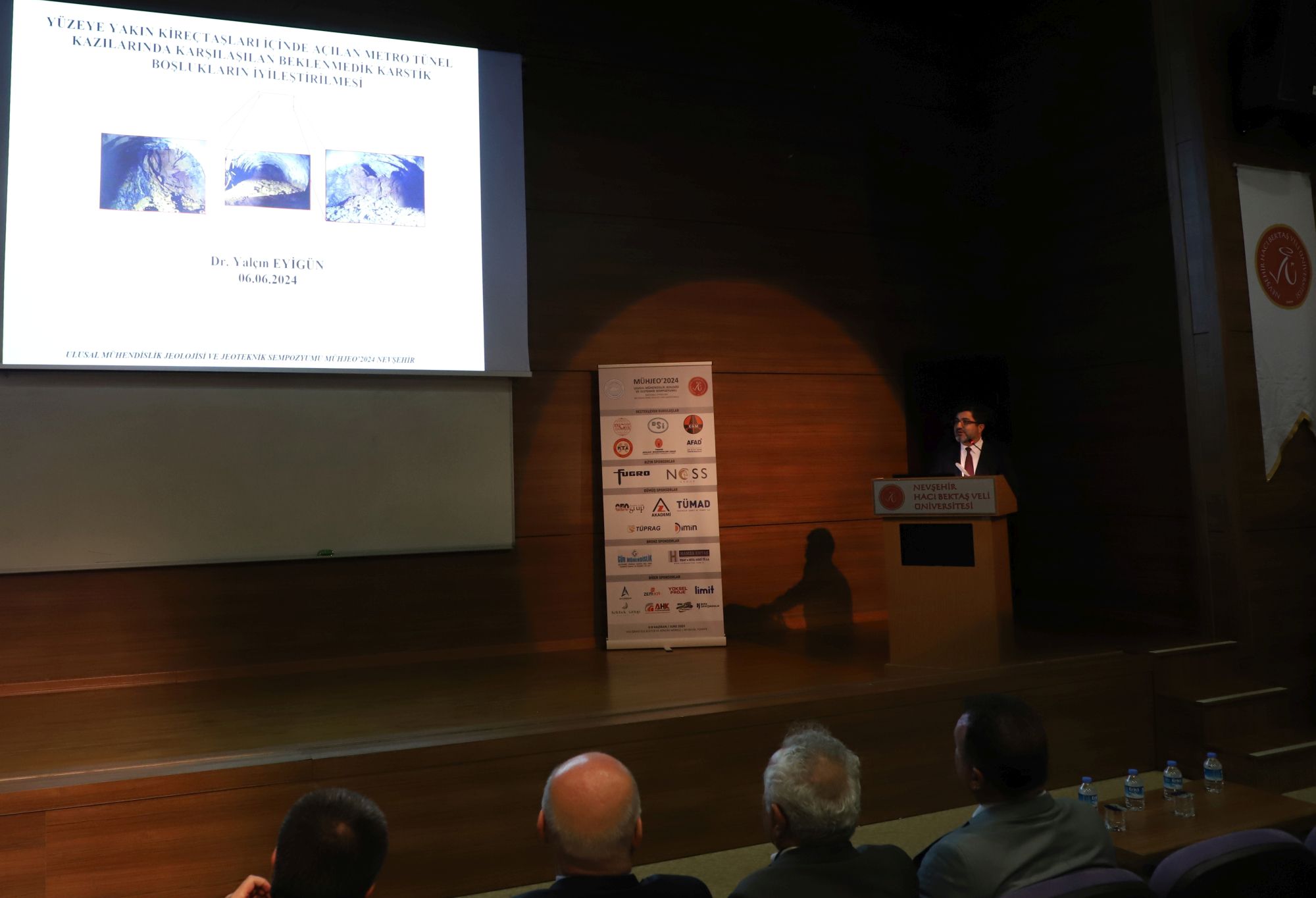 Ziyaret sonrası NEVÜ ve Mühendislik Jeolojisi Derneği iş birliğinde düzenlenen “5. Ulusal Mühendislik Jeolojisi ve Jeoteknik Sempozyumu (MÜHJEO’2024)” katılan Genel Müdür Dr. Yalçın Eyigün, sempozyumda ‘Yüzeye Yakın Kireçtaşları İçinde Açılan Metro Tünel Kazılarında Karşılaşılan Beklenmedik Karstik Boşlukların İyileştirilmesi)’ üzerine sunumda bulundu.