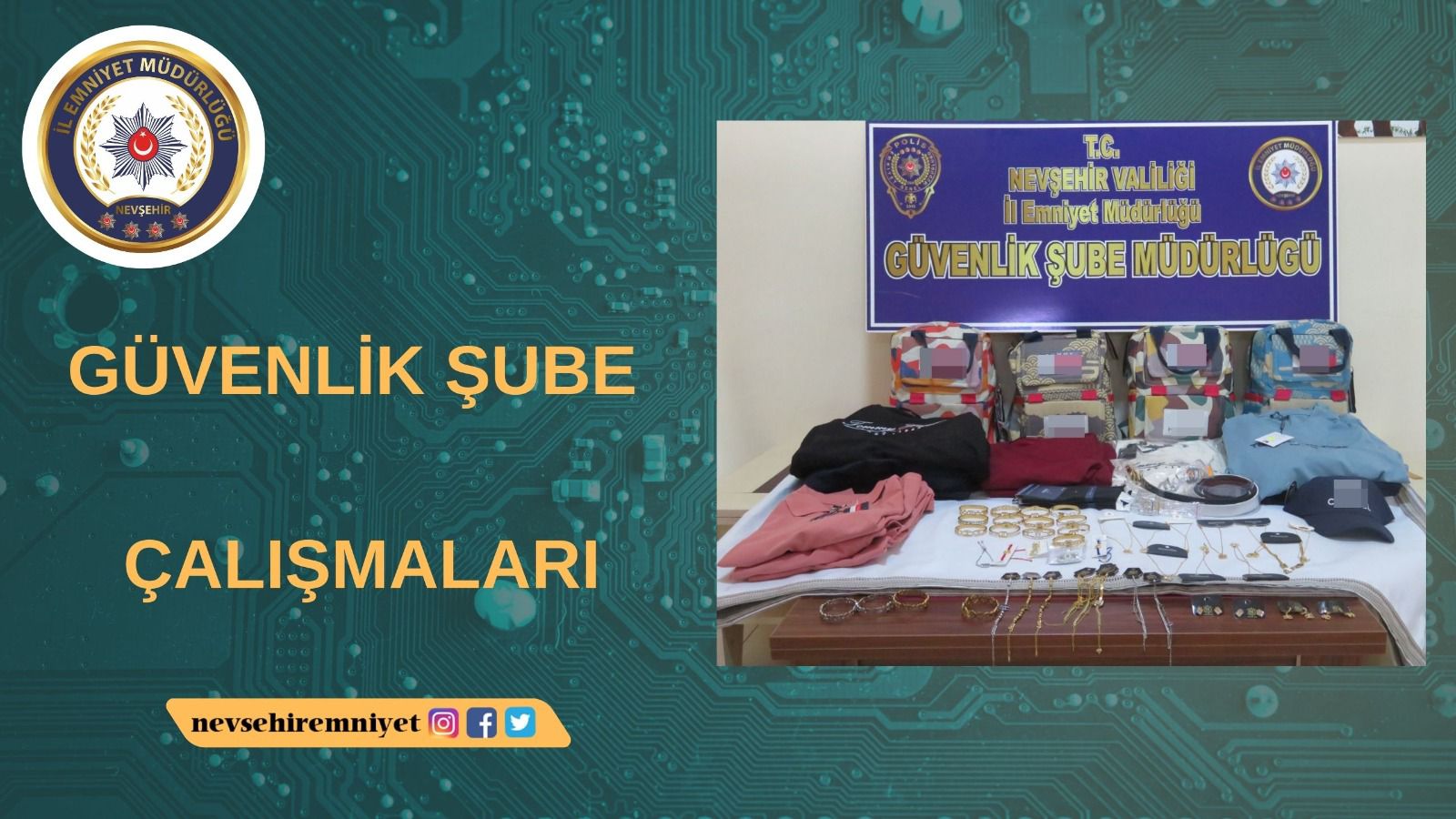 Nevşehir İl Emniyet Müdürlüğü hukuka aykırı hareket eden şahıslara göz açtırmıyor. Nevşehir İl Emniyet Müdürlüğü Güvenlik Şube Müdürlüğü ekiplerince “marka tescilli ürünleri taklit niteliğinde haksız ve hukuka aykırı bir şekilde satışa sunmak” suçuna istinaden; il merkezinde bulunan 5 işyerinde yapılan aramada 120 adet taklit ürüne el konularak 5 şahsa gerekli adli işlem yapıldı.