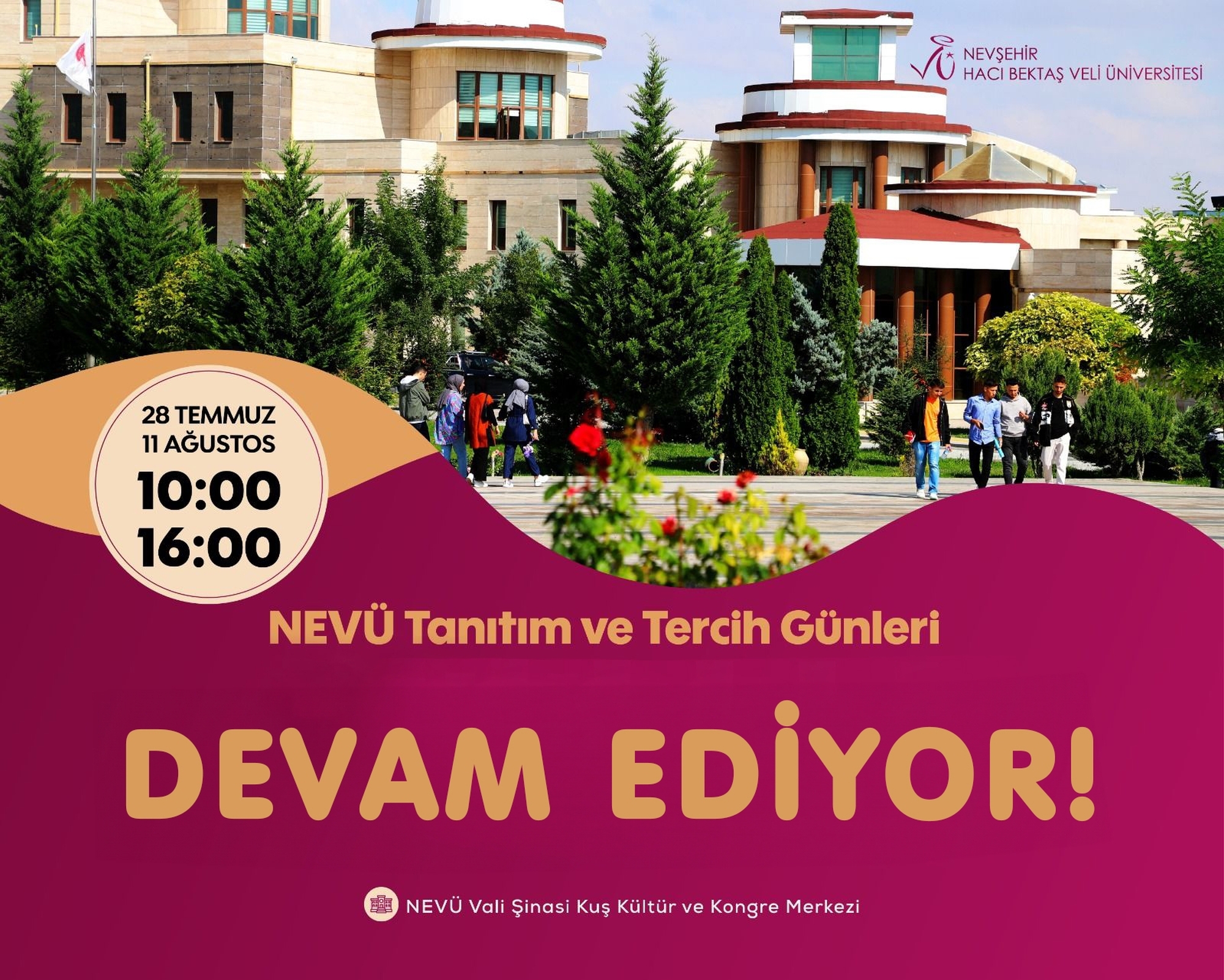 Nevşehir Hacı Bektaş Veli Üniversitesi (NEVÜ), Yükseköğretim Kurumları Sınavı (YKS) sonuçlarının açıklanmasının ardından üniversite tercihi yapacak aday öğrenciler ve ailelerine yönelik olarak başlattığı “Geleceğinizi NEVÜ’de Şekillendirin! Tercihleriniz İçin İlk Adımı Burada Atın!” temalı Tanıtım ve Tercih Günleri etkinliğini yüz yüze ve online (çevrim içi) olarak başarıyla sürdürüyor.