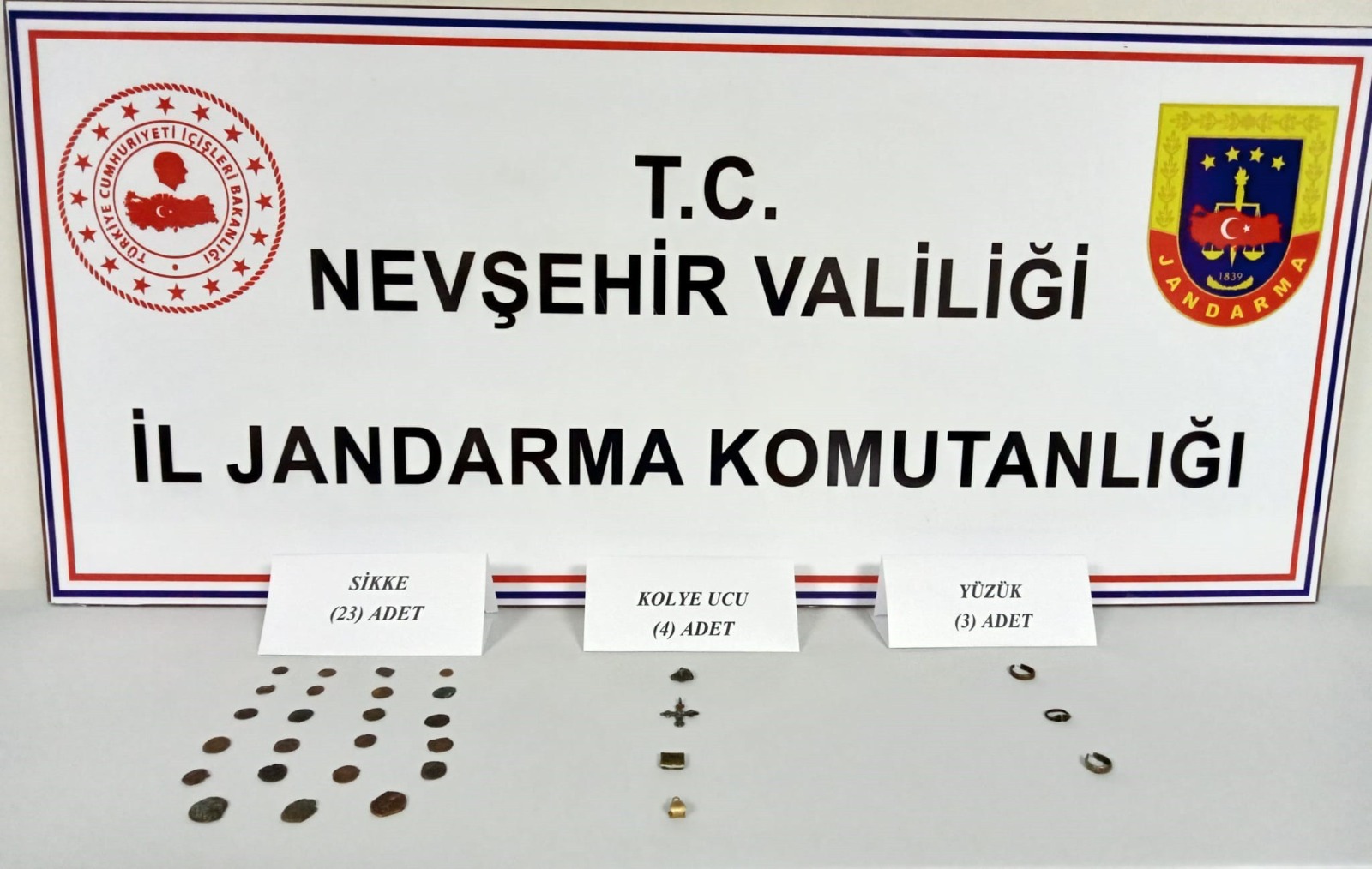 Edinilen bilgiye göre Avanos ilçesinde bir şahsın üzerinde arama yapan Jandarma ekipleri Roma Dönemine ait olduğu değerlendirilen 3 adet yüzük, 4 adet kolye ucu ve 23 adet sikke ele geçirdi. Şüpheli şahıs hakkında Avanos Cumhuriyet Savcılığı tarafından 2863 Sayılı Kültür ve Tabiat Varlıklarını Koruma Kanununa Muhalefet suçundan adli işlem başlatıldı.