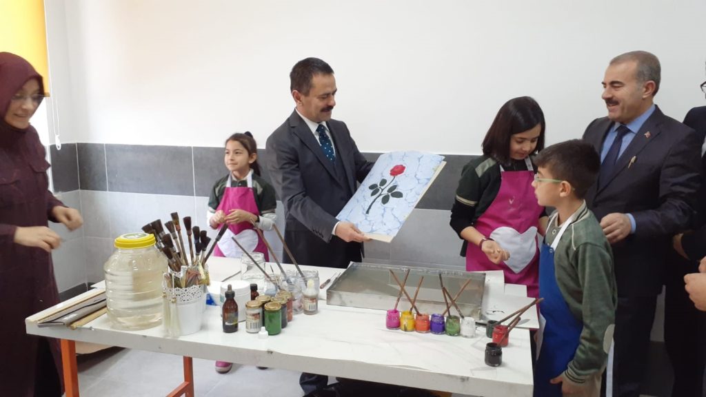 Bu kapsamda Mehmet Gülen İlkokulu’nda farklı kademelerden okullarda 96 adet Tasarım Beceri Atölyesinin açılışı yapıldı.