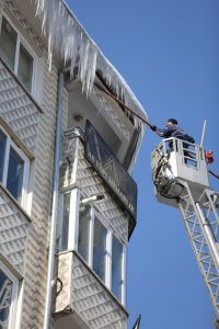 Kaldırımlarda yürüyen yayalar ve park halindeki araçlar içinde tehlike oluşturan ve bazı yerlerde boyları 2 metreye kadar ulaşan buz sarkıtlarının kırılma çalışmaları sırasında çevrede güvenlik tedbirleri de alınıyor.