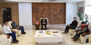 “STEM Temelli Deprem Savar Yapılar” isimli projeleri ile 27 Nisan – 1 Mayıs 2023 Tarihleri arasında gerçekleştirilecek olan TEKNOFEST İstanbul finallerine katılmaya hak kazanan BİLSEM öğrencileri Ali Ulvi Toraman ve Mustafa Aydemir, Okul Müdürü Ahmet Emre Ergin ve danışman öğretmen Aylin Akyüz eşliğinde NEVÜ Rektörü Prof. Dr. Semih Aktekin’i makamında ziyaret etti.