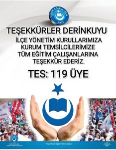 Derinkuyu ilçe başkanımız Hakan Köse nezdinde Derinkuyu ilçe yönetimimize, kurum temsilcilerimize, tüm eğitim çalışanlarına, bu süreçte bizlere inanarak destek olan dostlarımıza teşekkür ederiz.