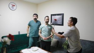 Sağlık çalışanlarının özverili mücadelesine teşekkür etmek amacıyla Nevşehir Devlet Hastanesi, Kapadokya Hastanesi ve Versa Hastanesi’ni ziyaret eden Nevşehir Belediyesi görevlileri doktorlardan hemşirelere, teknik ekiplerden hastane personeline kadar tüm sağlık çalışanlarına karanfil vererek günlerini kutladı.