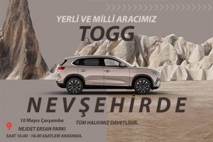 Türkiye’nin yerli otomobili TOGG, Nevşehir’de görücüye çıkacak. Ak Parti Nevşehir İl Başkanı Ali Kemikkıran, Türkiye’nin yerli otomobili TOGG’un yarın saat 10:00 – 18:00 saatleri arasında Nejdet Ersan Parkında vatandaşlarla buluşacağını söyledi.