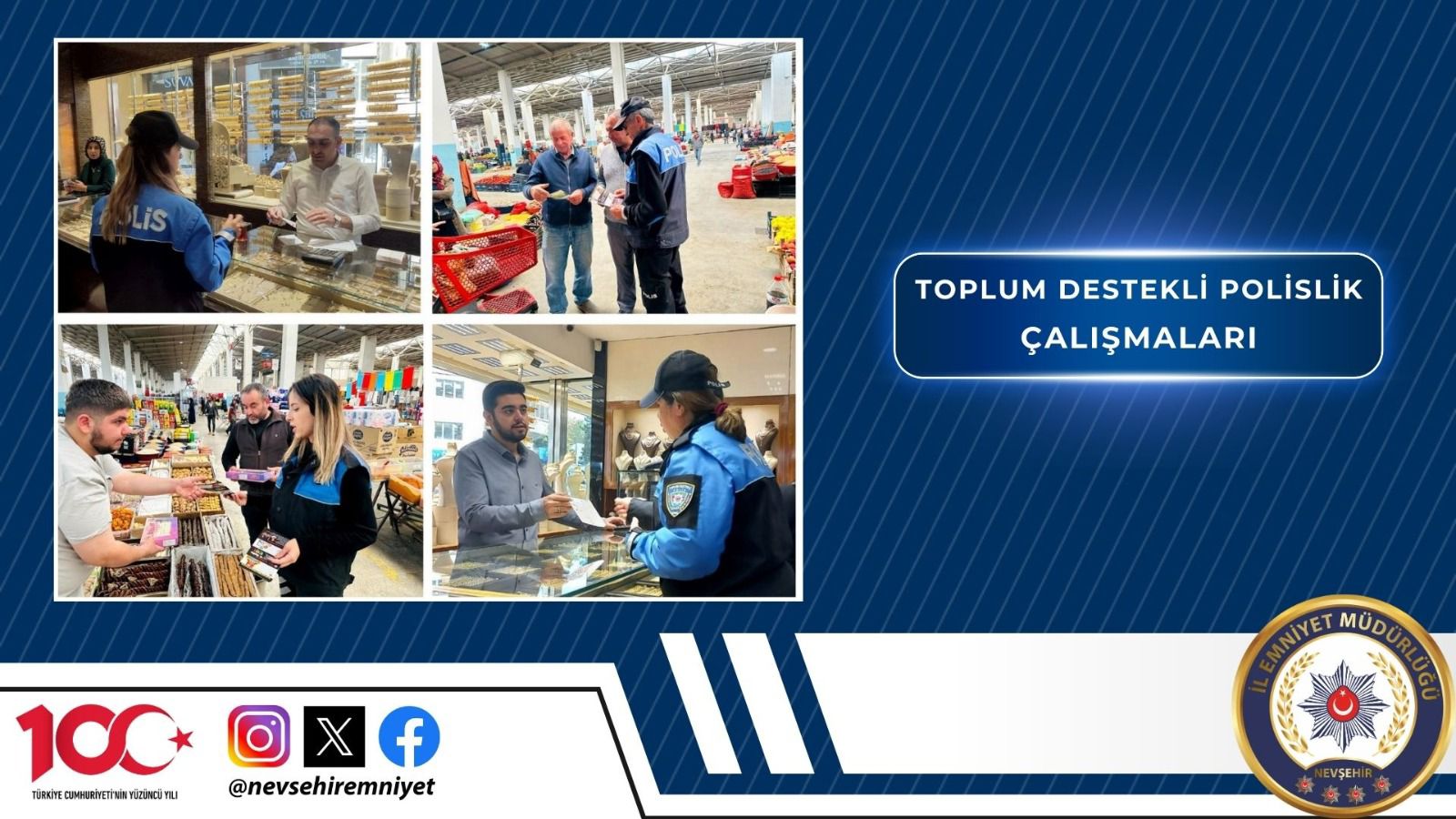 İl Emniyet Müdürlüğümüz Toplum Destekli Polislik Şube Müdürlüğü personelimizce ilimiz kapalı pazar yeri ziyaret edilerek vatandaşlarımıza ve pazar esnafına yönelik dolandırıcılık ve KADES ile ilgili; ayrıca ilimizde bulunan kuyumcular ziyaret edilerek açıktan hırsızlık ile alakalı broşür dağıtılarak bilgilendirme ve bilinçlendirme faaliyetinde bulunulmuştur.
