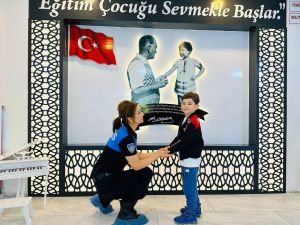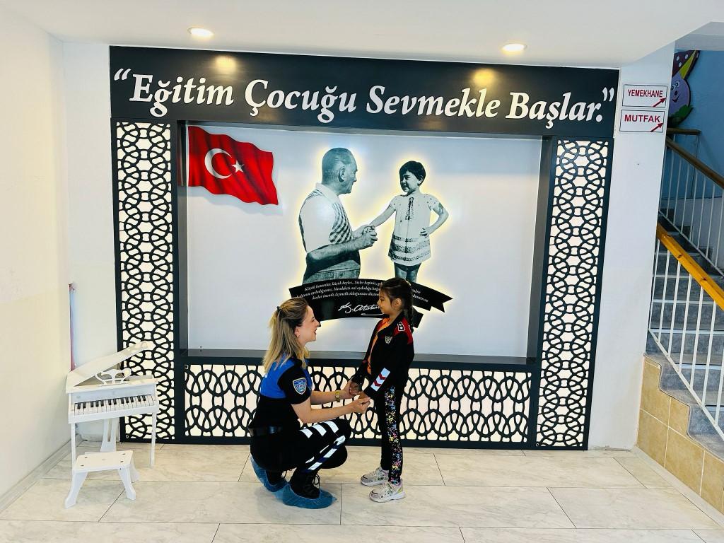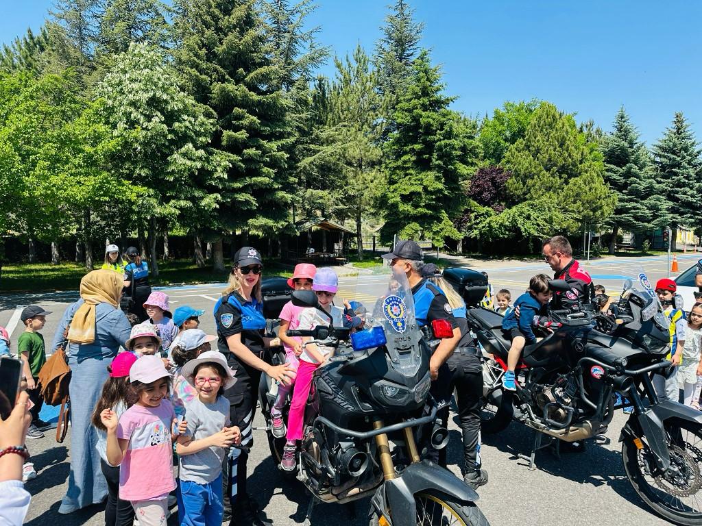 Toplum Destekli Polislik faaliyetleri kapsamında 23 Nisan Ana Okulu’nda eğitim gören 48 öğrenciye trafik eğitimleri verildi. Bölge Trafik Denetleme Şube Müdürlüğü’nde misafir edilen öğrencilere Yunus Timleri tarafından basit güvenlik tedbirleri ve trafik kuralları hakkında bilgiler verilirken ayrıca narkotik köpeğinin yaptığı gösteri izletildi ve misafir öğrencilere çeşitli ikramlar yapıldı.
