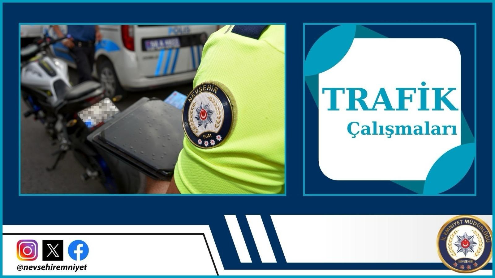Nevşehir İl Emniyet Müdürlüğü Trafik birimlerince 7.985 araç sürücüsünün kontrolü yapıldı. 18 araç trafikten men edilirken hız ihlalinden 960, kırmızı ışık ihlalinden 177, hatalı parktan 268, taşıma kanununa muhalefetten 102 ve diğer maddelerden 810 olmak üzere 2.317 araç/sürücüsüne cezai işlem uygulandı. Ayrıca 14 yaralanmalı trafik kazasında 23 vatandaş yaralandı.