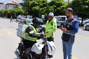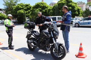 Merkez ve ilçelerde eşzamanlı olarak Motosiklet, Traktör ve Servis Denetimi gerçekleştirildi. 206 motosiklet, 121 araç, 38 traktör, 45 servis ve 450 şahıs kontrol edildi.