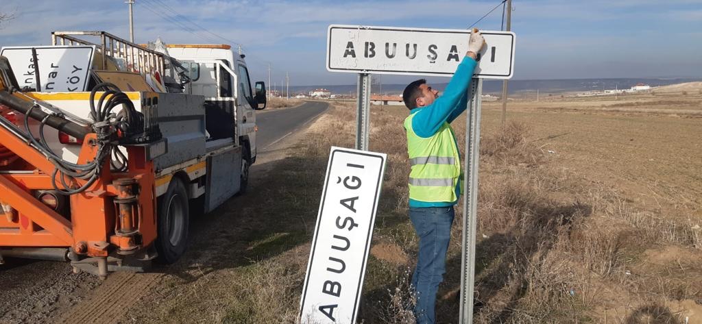 Gülşehir İlçesine bağlı Abuşağı Köyünde trafik işaret levhaları bakım onarım çalışması yapıldı.