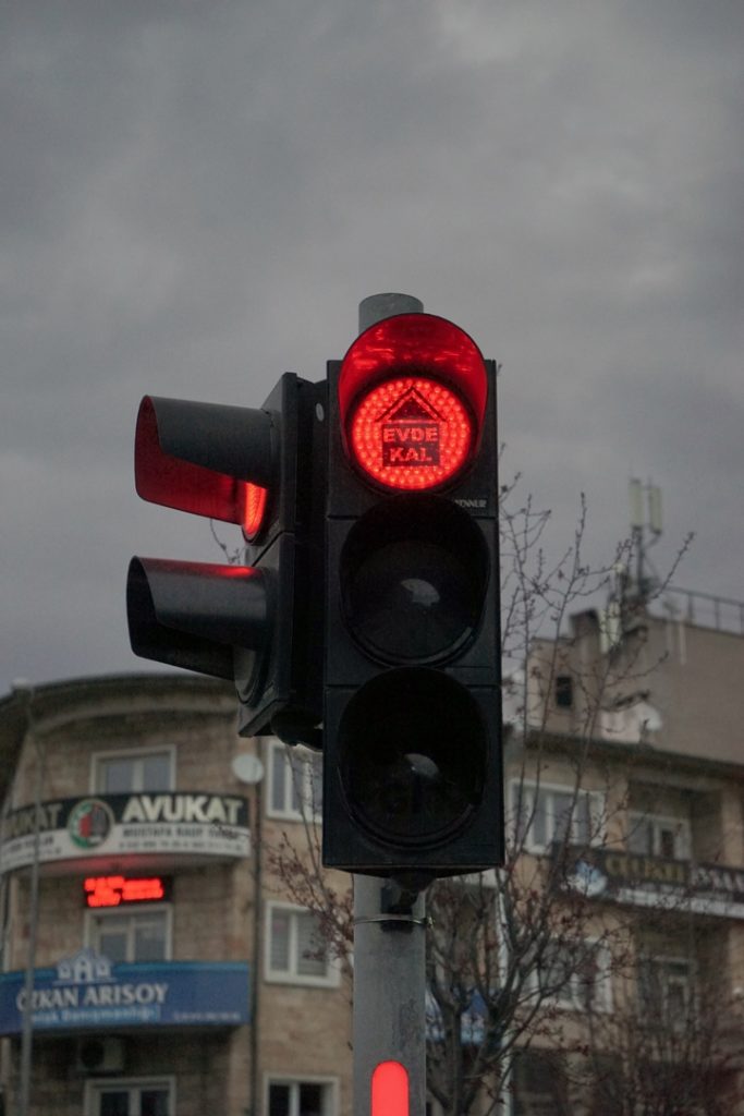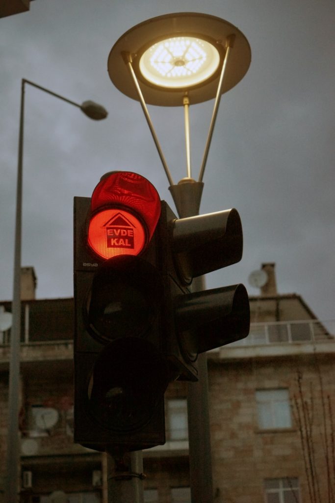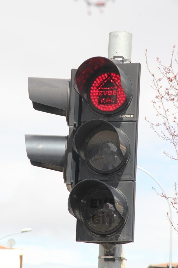 Çalışmalar kapsamında şehrin farklı noktalarındaki trafik sinyalizasyon sistemlerinde kırmızı ışığa “Evde kal”, yeşil ışığa da “Eve git” yazıları yerleştirildi.