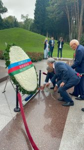 TGF Genel Başkanı Yılmaz Karaca ve beraberindeki heyet ilk olarak Azerbaycan’ın merhum Cumhurbaşkanı Haydar Aliyev’in kabristanının önünde saygı duruşunda bulundu ve kabristana iki adet karanfil bıraktı. Daha sonra ise Azerbaycan’ın merhum Cumhurbaşkanı Ebulfez Elçibey’in kabri de ziyaret edilerek karanfil bırakıldı.