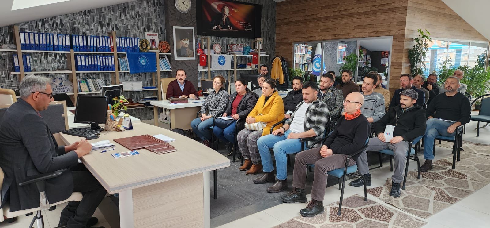 Başkan Urgenç; depremin ilk gününden beri acıları en aza indirgemek için sahada idik. Bu hususta fedakârca görev yapan sorumluluk üstlenen değerli eğitim çalışanlarına teşekkür ediyorum. Diyerek yaptıkları ve yapacakları çalışmaları yönetim kurulu üyeleri ile istişare yaparak yeniden planladılar.