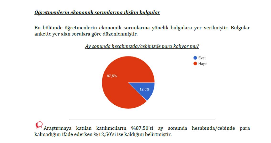 Ankete katılan öğretmenlerin büyük kısmının ay sonunda parası kalmıyor.