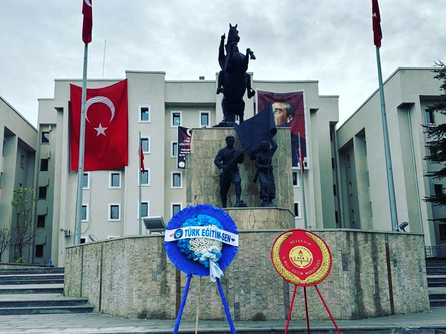 Nevşehir Atatürk Anıtı önünde yapılan 24 Kasım Öğretmenler Günü programında Nevşehir’de ilk kez Türk Eğitim Sen öğretmenler adına Atatürk anıtında çelenk sundular. Türk Eğitim Sen Nevşehir şube başkanı Tayfur Urgenç ve heyet İl Milli Eğitim Müdürlüğünün çelenk sunumundan sonra çelenk sunumu gerçekleştirdi.