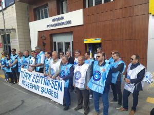 Türk Eğitim Sen Nevşehir Şube Başkanı Tayfur Urgenç yaptığı kitlesel basın açıklamasında şu ifadeleri kullandı.