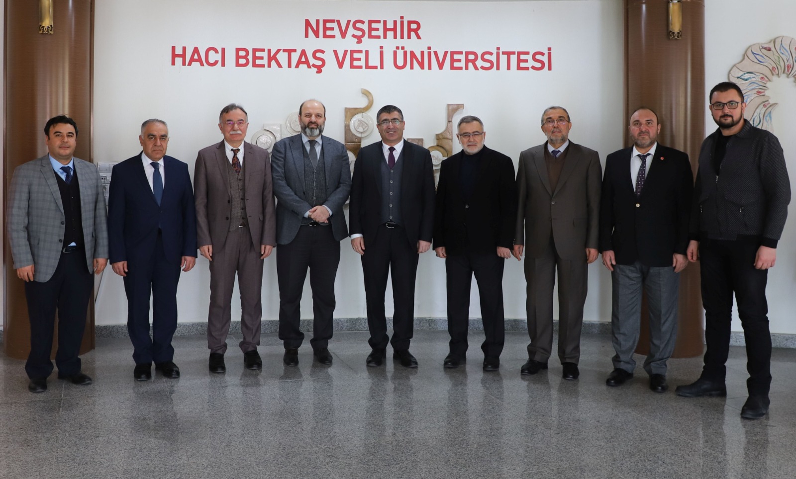 Türkiye Diyanet Vakfı Mütevelli Heyeti 2. Başkanı İhsan Açık beraberinde Türkiye Diyanet Vakfı Genel Müdürü İzani Turan, Türkiye Diyanet Vakfı Genel Müdür Yardımcısı Mehmet Eğinç, Diyanet İşleri Başkanlığı Başkanlık Müşaviri ve Türkiye Diyanet Vakfı Denetim Kurulu Üyesi Ahmet Belada, Nevşehir İl Müftüsü Kazım Güzel ile Nevşehir Hacı Bektaş Veli Üniversitesi (NEVÜ) Rektörü Prof. Dr. Semih Aktekin’i ziyaret etti.