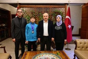 Vali Fidan, başarılı sporcuyu ve antrenörünü tebrik ederek başarılarının devamını diledi.