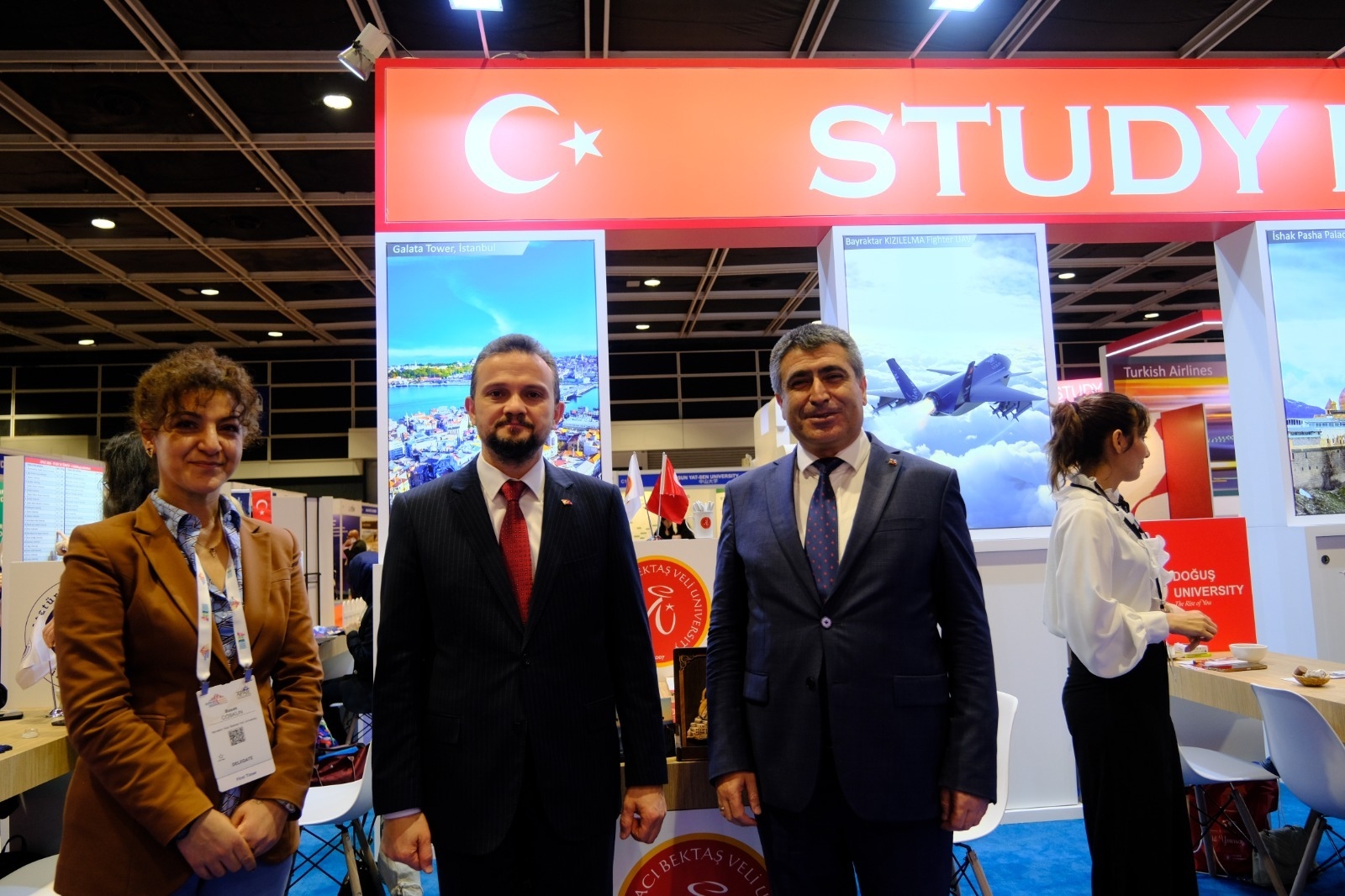 APAIE 2026 Fuarı’nda Türkiye, Dışişleri Bakanlığı Türkiye Ulusal Ajansı koordinasyonunda oluşturulan “Study in Türkiye” pavilyonu ile adeta çıkarma yaptı. Toplam 82 Türk üniversitesinin güçlü bir şekilde yer aldığı bu dev organizasyonda Nevşehir Hacı Bektaş Veli Üniversitesi (NEVÜ) ile birlikte; Ankara Üniversitesi, Erciyes Üniversitesi, İstanbul Üniversitesi-Cerrahpaşa, Ondokuz Mayıs Üniversitesi (OMÜ), Manisa Celal Bayar Üniversitesi, Ankara Sosyal Bilimler Üniversitesi, Ankara Yıldırım Beyazıt Üniversitesi (AYBÜ), Konya Teknik Üniversitesi, Erzincan Binali Yıldırım Üniversitesi, Tokat Gaziosmanpaşa Üniversitesi, Hitit Üniversitesi, Akdeniz Üniversitesi ve Kayseri Üniversitesi gibi ülkemizin önde gelen devlet ve vakıf yükseköğretim kurumları da stant açarak Türkiye’nin akademik vizyonunu uluslararası arenada başarıyla temsil etti.