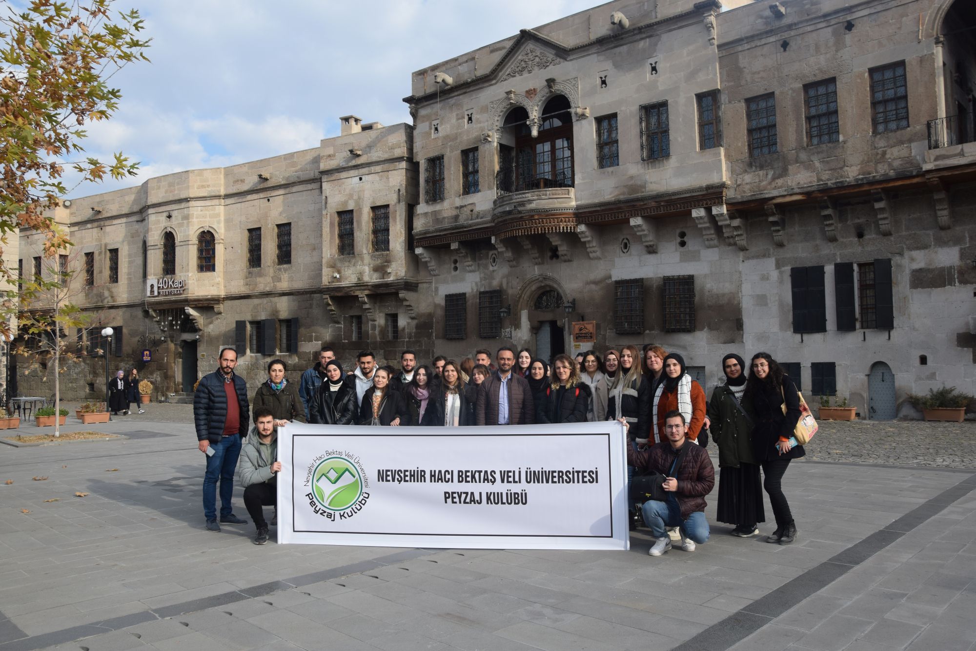 Millet bahçesi saha gezisinin ardından taşıdığı zengin tarihi ve kültürel peyzaj potansiyeli nedeniyle ders yürütücüleri tarafından belirlenen önemli kent parçaları (Kayseri Cumhuriyet Meydanı, Geleneksel Kayseri Sokağı: Tavukçu Mahallesi, Kayseri Cumhuriyet Mahallesi Yaya Bölgesi, Mimar Sinan Parkı) genelinde yerinde gözlemler yapıldı. Geziye eşlik eden Kayseri Büyük Şehir Belediyesi Park ve Bahçeler Müdürlüğü’nden Yüksek Peyzaj Mimarı Ahmet Moda, Kayseri tarihi kent merkezinde yer alan kentsel peyzaj alanlarının geçirdiği dönüşüm ve mevcut durumları hakkında detaylı bilgiler verdi.