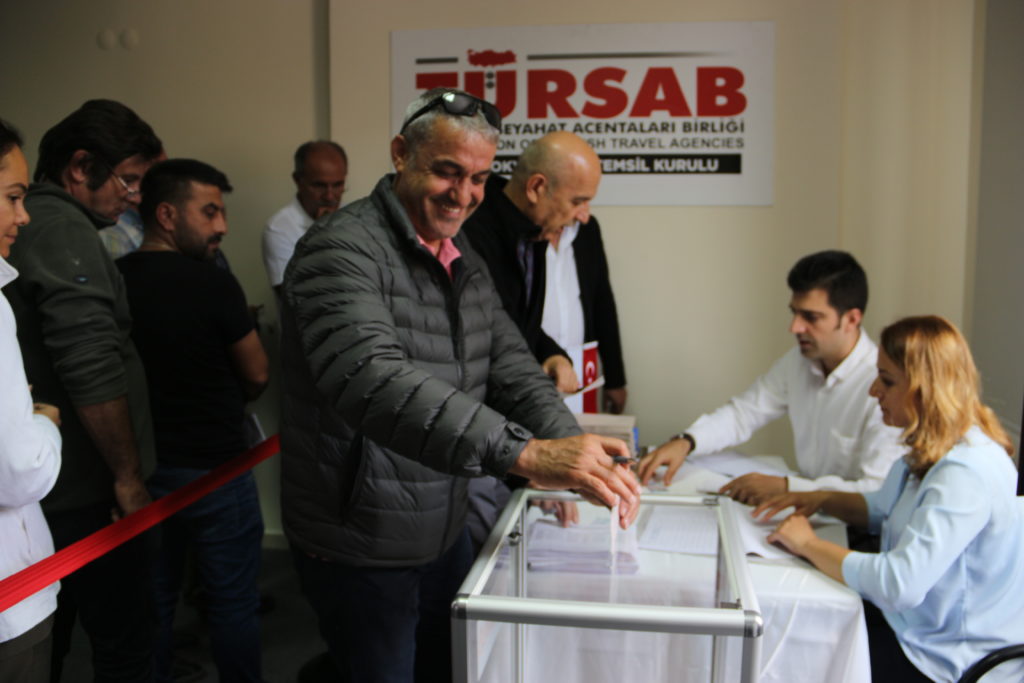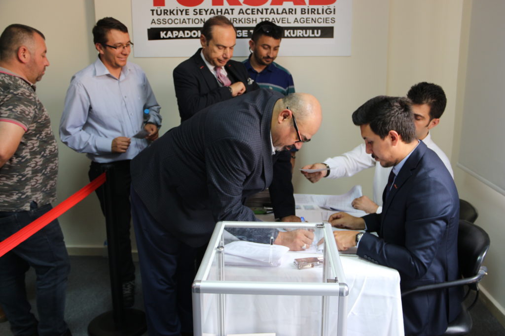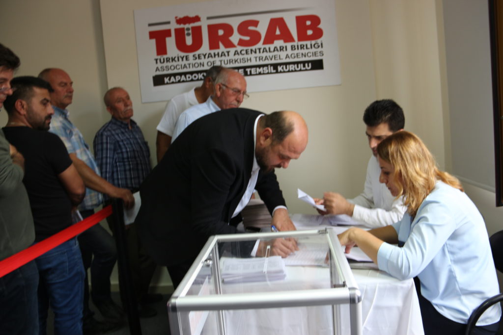 Nevşehir’in Ürgüp ilçesinde bulunan TURSAB bölge temsil kurulu binasında düzenlenen seçime Talip Aldemir tek aday olarak girdi. 300’den fazla acentanın kayıtlı olduğu TURSAB Kapadokya Bölge Temsil Kurulu seçiminde acenta sahipleri büyük bir katılım gösterirken üyelerin yarısı oy kullandı.