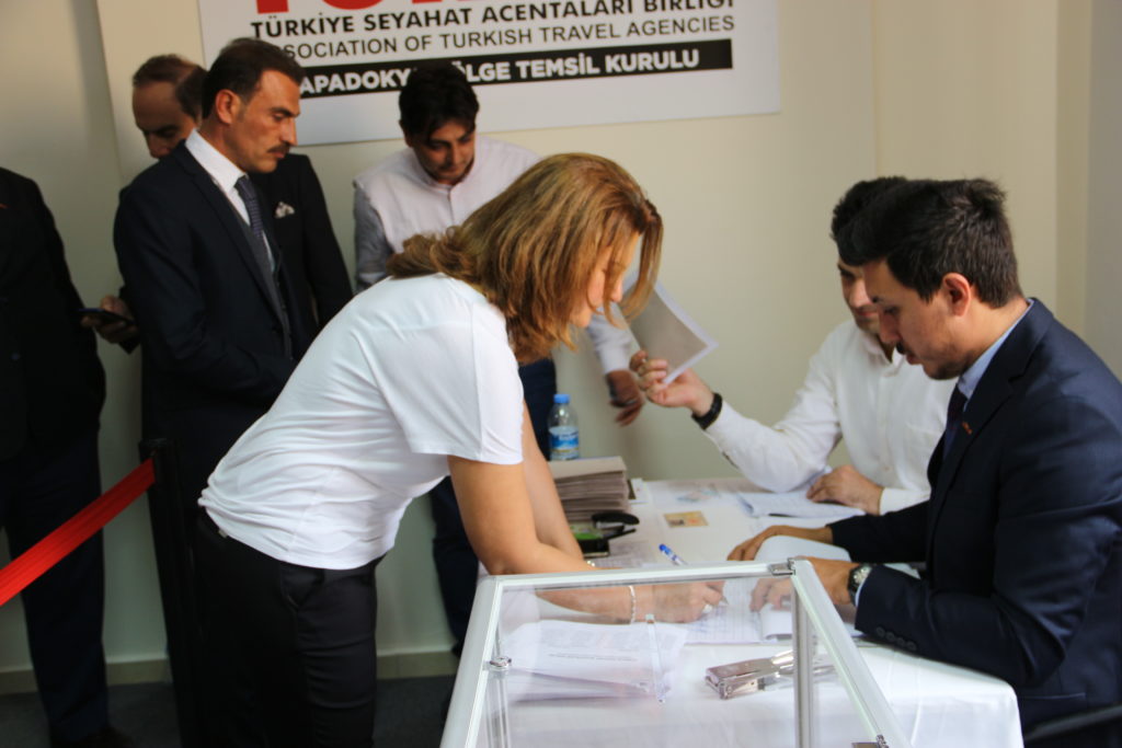 TURSAB Yönetim Kurulu üyesi Ahmet Özden, TURSAB Kapadokya Bölge Temsil Kurulu Başkanı Aysel Atak ve Nevşehir genelinde hizmet veren seyahat acentalarının yoğun katılım gösterdiği seçimlerde ilk defa tek liste yarıştı.