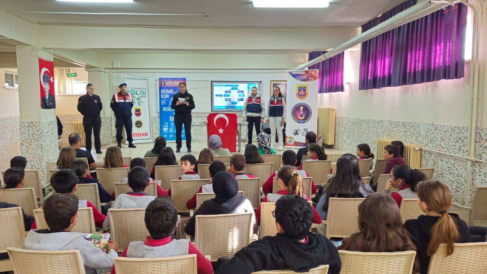 Çevre, Doğa ve Hayvan Koruma Timi, Kaçakçılık ve Organize Suçlarla Mücadele Şube Müdürlüğü ve Gülşehir İlçe Jandarma Komutanlığı ekipleri ile koordineli olarak 23 Ekim 2024 tarihinde Gülşehir İlçesi Tuzköy İlk/Ortaokulundaki öğretmen ve öğrencilere yönelik olarak “Çevre Kirliliği ve Sıfır Atık, Dijital Parola Güvenliği, Oltalama Saldırılarına Karşı Alınacak Önlemler,