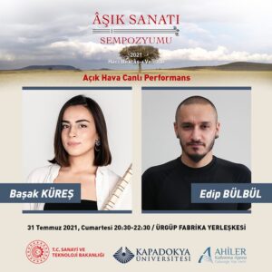Pandemi kurallarına uygun olarak 29-31 Temmuz 2021 tarihleri arasında Kapadokya Üniversitesi Mustafapaşa ve Ürgüp Fabrika yerleşkelerinde üç gün sürecek sempozyum, Türkiye’de âşık sanatı üzerine çalışan araştırmacıları bir araya getirerek disiplinler arası bir paylaşım ve tartışma ortamı sağlayacak. Sempozyumun son günü olan 31 Temmuz Cumartesi günü, Ürgüp Fabrika Yerleşkesinde Edip Bülbül ve Başak Küreş’in canlı performansıyla açık hava konseri düzenlenecek.