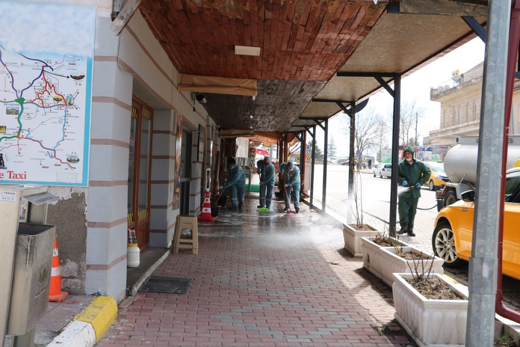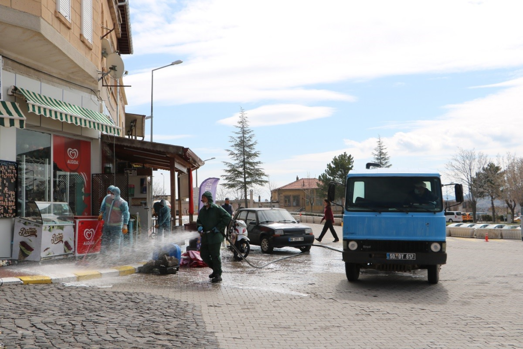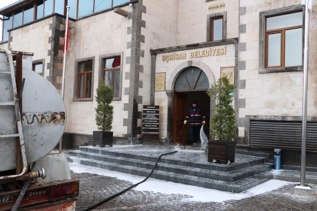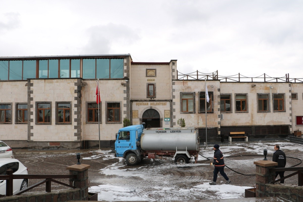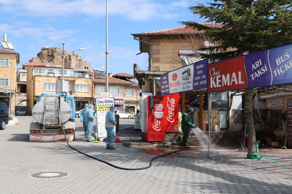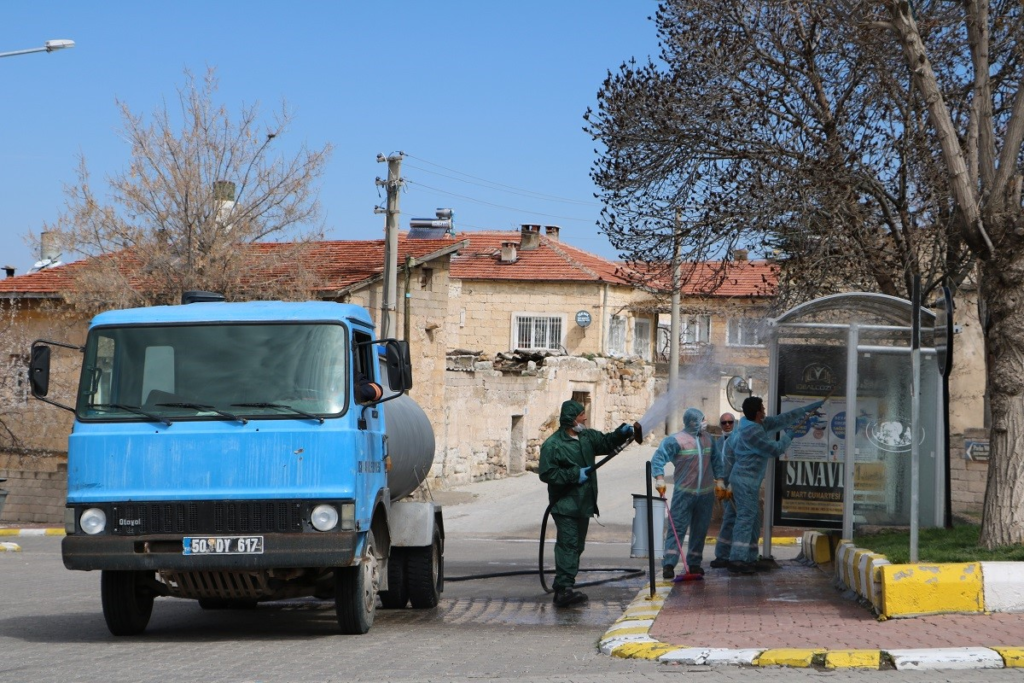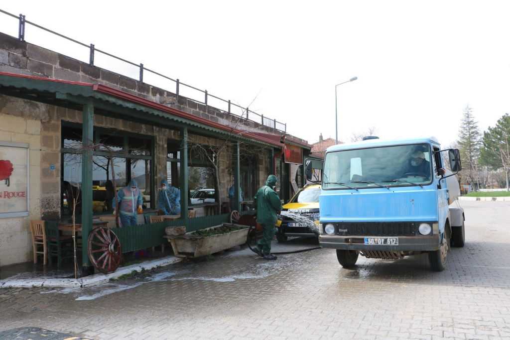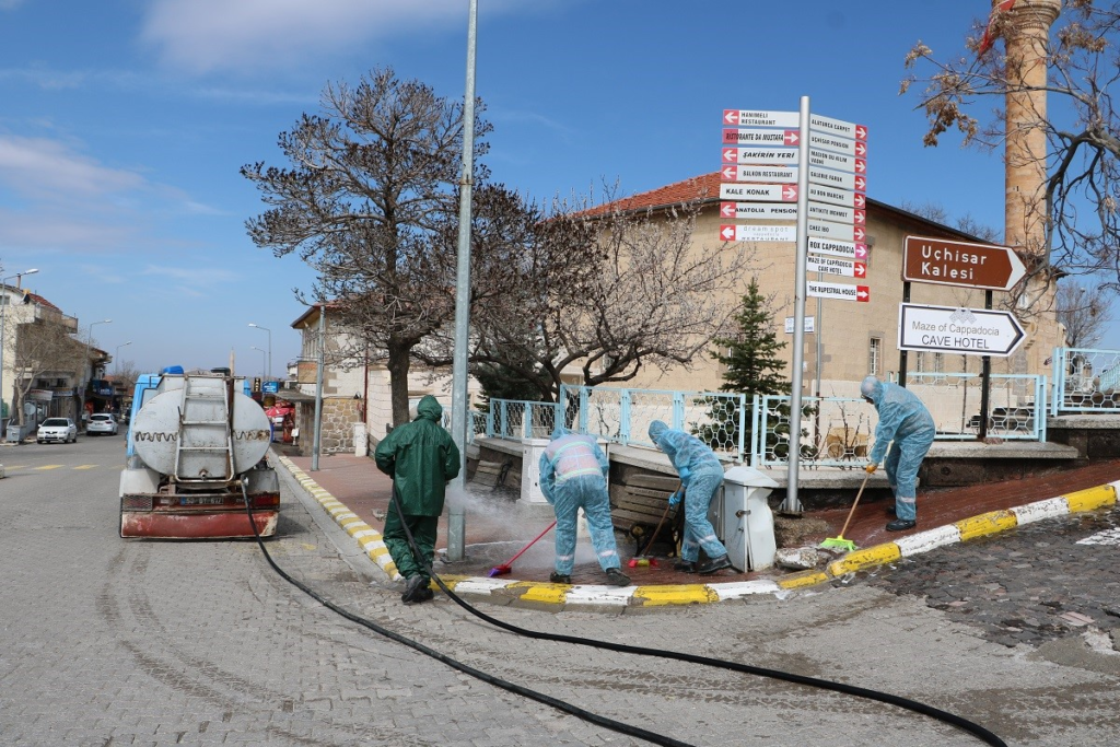 Uçhisar Belediye ekipleri, belirli bir plan çerçevesinde dezenfekte çalışmalarına devam ediyor.