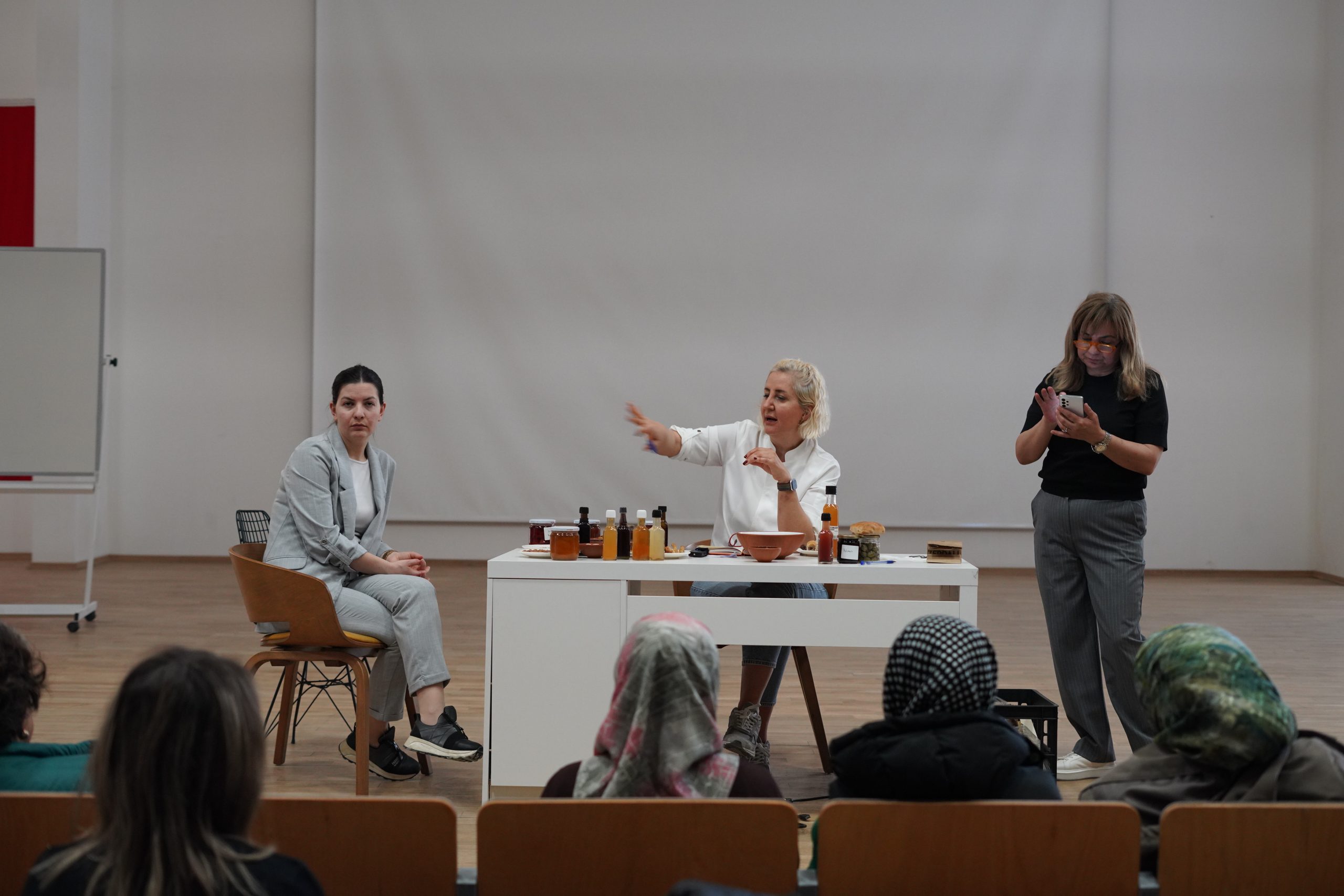Şef Yasemin Güzel’in verdiği eğitimlerde, üreticilere hem etik ve sürdürülebilir üretim ilkeleri hem de pazarlama ve satış tekniklerinin öğretilmesi amaçlanıyor. Program kapsamında ilk olarak “Slow Food Felsefesi ve Yeryüzü Pazarı Kriterleri” ele alınarak, “iyi, temiz ve adil” üretim anlayışı tanıtıldı. Yeryüzü Pazarı’nın kriterleri detaylandırılırken geleneksel çiftçi pazarlarından farkları ve etik kavramının kapsamında üreticilere bilinçli ve sorumlu bir yaklaşımla üretim ve satış süreçleri yönetimi anlatıldı. “Ürünlerin Kalite ve Sürdürülebilirlik Standartları” başlığı altında, mevsimsellik, katkı maddesiz üretim ve çevre dostu ambalajlama gibi konuların işlendiği eğitimlerde, plastik kullanımının azaltılması ve atık yönetimi konuları ele alındı. Karbon ayak izini düşürmeye yönelik sürdürülebilir lojistik planlama stratejilerinin önemi vurgulandı. “Hijyen, Gıda Güvenliği ve Etiketleme” başlığı altında, üretimden satışa kadar uyulması gereken kurallar ile üretim alanlarında, pazar stantlarında ve depolama süreçlerinde alınması gereken hijyen önlemleri ayrıntılı olarak aktarıldı. HACCP uygulamalarının ev ortamında nasıl uygulanabileceği ifade edildi. Bozulabilir gıdaların taşınması ve saklanmasına dair önemli bilgiler verilirken, ürünlerin doğru şekilde etiketlenmesi, içerik ve alerjen bilgileri ile son tüketim tarihi gibi kritik unsurların önemine dikkat çekildi.