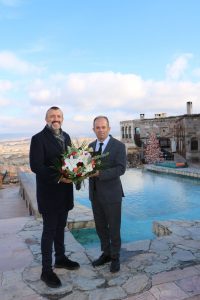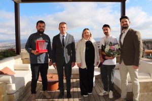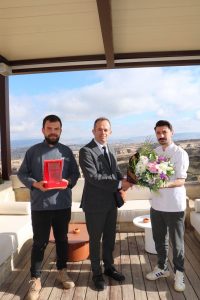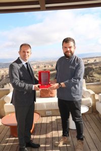 Uçhisar Belediye Başkanı Abdullah ÇAMCI, Uçhisar’da bulunan Reserved Restaurant, Moniq Restaurant, Lil’a Restaurant, Nahita Restaurant, Seki Restaurant ve Saklı Konak Restaurantlarının Michelin Rehberi Türkiye Seçkisi listesine girmesi dolayısıyla işletmelere tebrik plaketi takdim etti. Başkan ÇAMCI, restoranları tek tek ziyaret ederek yöneticiler ve şeflerle görüştü. Bu önemli başarının Uçhisar’ın gastronomi alanındaki yükselişini gösterdiğini belirten ÇAMCI, kasabanın hem turizmde hem de gastronomide uluslararası standartlara ulaştığını ifade etti. Başkan ÇAMCI açıklamasında, “Uçhisar’ın eşsiz lezzetlerini dünyaya tanıtan restoranlarımızın Michelin Rehberi’nde yer alması hepimiz için gurur verici. Bölge turizmine değer katan tüm işletmelerimizi kutluyor, başarılarının devamını diliyorum” dedi. Restoran yöneticileri de Başkan Abdullah ÇAMCI’ya ziyaretleri ve takdim ettiği tebrik plaketleri için teşekkür ederek, Uçhisar’ın gastronomi kimliğini daha da güçlendirmek için çalışmaya devam edeceklerini belirtti. Uçhisar’ın art arda elde ettiği Michelin başarıları, bölgenin turistik çekiciliğini artırırken, dünya turizminde “kalitenin merkezi” olarak anılmasına katkı sağlamaya devam ediyor.