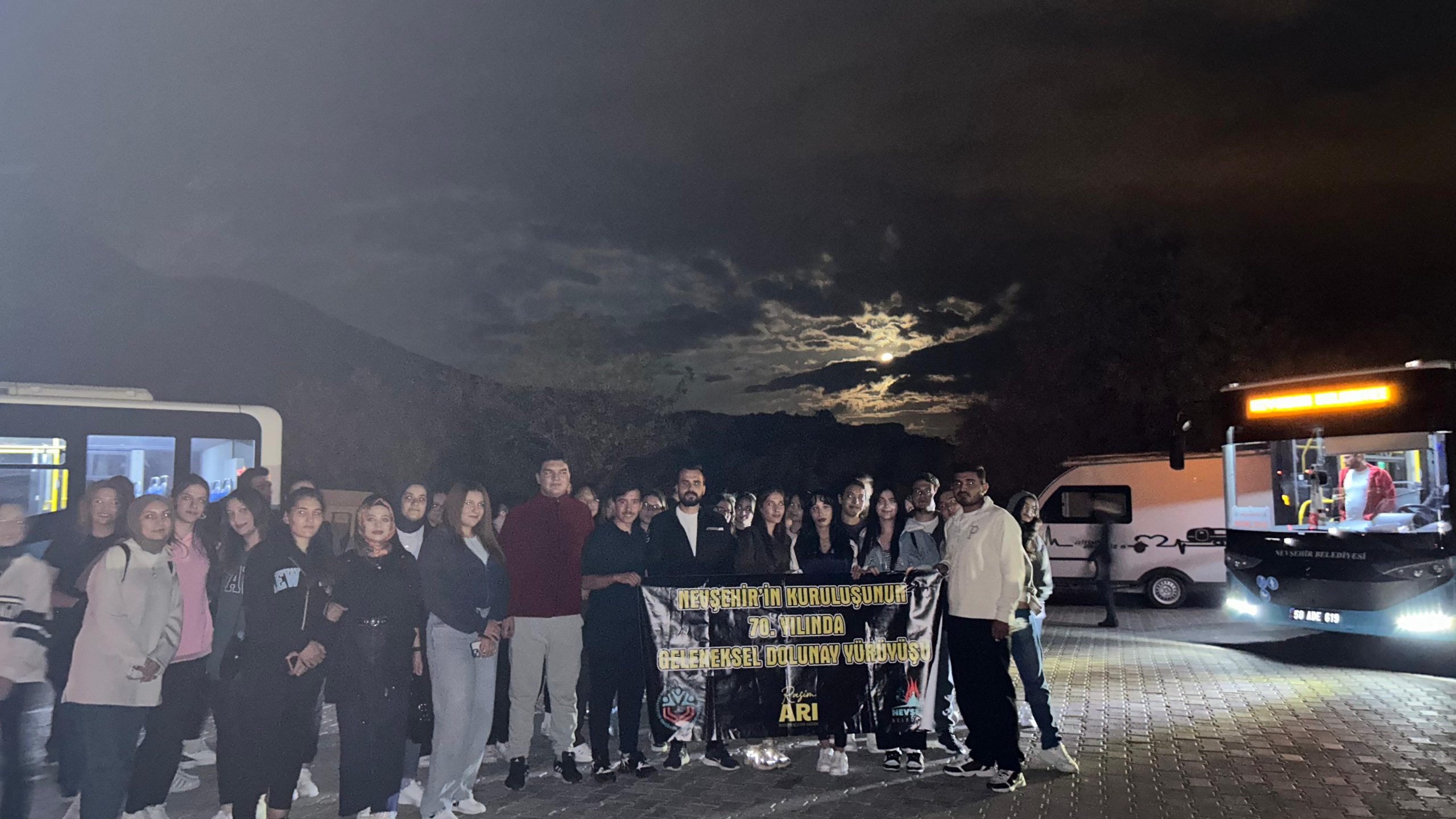 Dolunay Yürüyüşü ile hem spor yapma imkanı bulan hem de dolunayın büyüleyici ışığında Kapadokya’nın masalsı manzaralarını izleyerek stres atma fırsatı elde eden öğrencilere etkinlikte Nevşehir Belediyesi görevlileri tarafından çeşitli ikramlarda da bulunuldu.