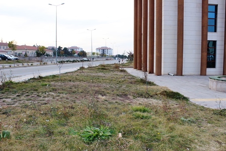 Haliyle ağaçların yapraklarını döktüğü şu günlerde Üniversite kampüsü içerisindeki yeşil alanların kış geldi diye mi bakımsız bırakıldığı merak konusu.