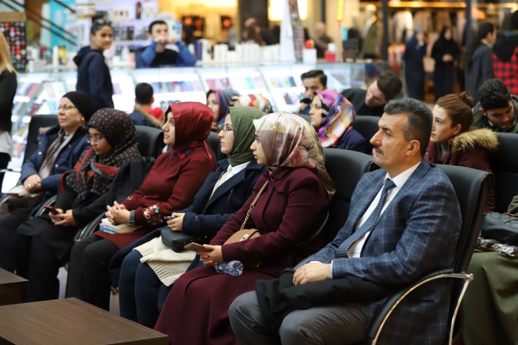 Nevşehir Belediyesi tarafından bu yıl ilk kez düzenlenen ve Kapadokya Forum AVM’de gerçekleştirilen fuarda ilk olarak Hz. Mevlana, Şems-i Tebrizi ve Tasavvuf hakkında söyleşi yapan yazar, öğrencilere kendilerini doğru anlatmak ve insan ilişkilerinde sağlıklı diyalog kurabilmek için bol bol kitap okumaları tavsiyesinde bulundu.