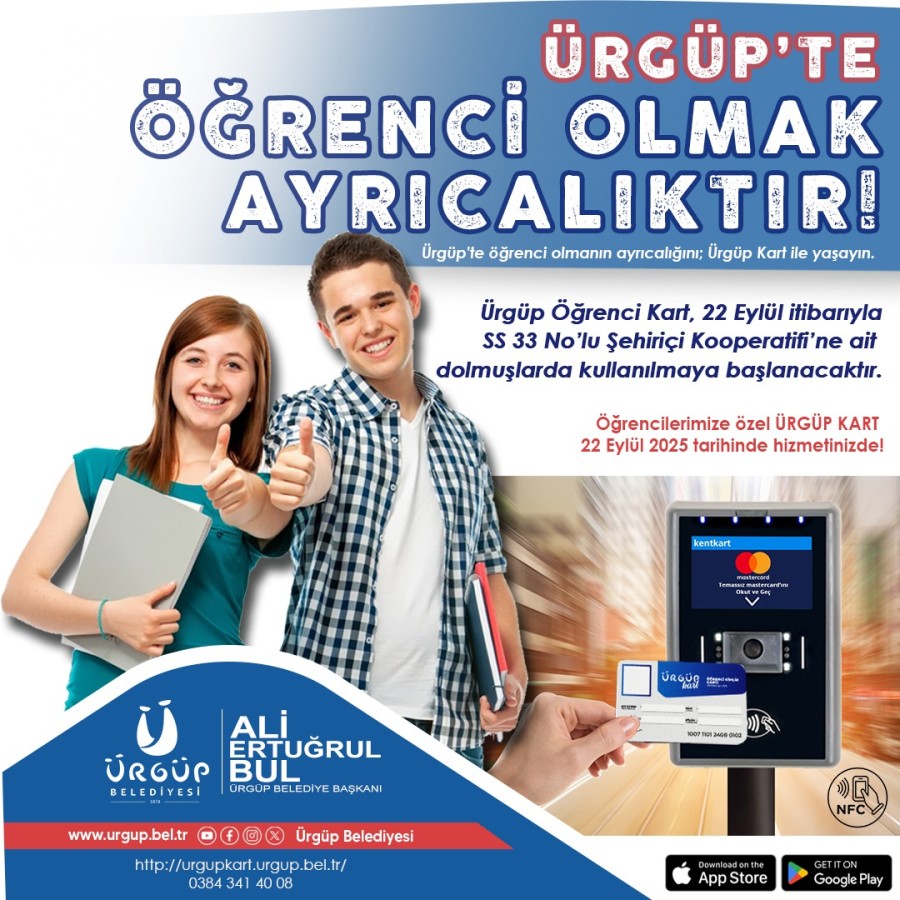 10 binden fazla öğrencinin eğitim gördüğü Ürgüp’te gençler, belediye otobüsleri ve toplu taşımadan daha uygun fiyatlarla faydalanabilecek.